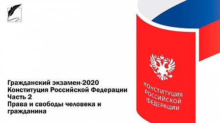Акция «Гражданский экзамен-2020. Конституция Российской Федерации» началась 9 июля и продлится до 12 декабря 2020 года, имеет беспрецедентный по длительности, количеству вопросов и планируемому числу участников масштаб. Акция проводится командой проекта «Гражданский экзамен» совместно с Ассамблеей народов России, добровольческим корпусом «Волонтеры Конституции» при поддержке всероссийского форума «Устойчивое развитие».