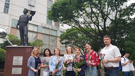 День русского языка и 220-летнюю годовщину со дня рождения А.С. Пушкина отметили российские соотечественники в Сеуле. В этот день по инициативе Ассоциации русскоязычных ученых, инженеров и преподавателей в Корее (RASA-Korea) и при поддержке Координационного совета организаций российских соотечественников в Республике Корея (КСОРС РК) любители русской словесности собрались у памятника А.С.Пушкину в Сеуле, чтобы возложить цветы и прочитать любимые стихи поэта.