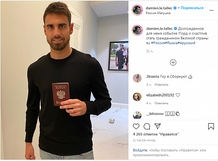 инстаграме 30-летний французский футболист Дамьен Ле Таллек. Место локации обозначено как Россия-Матушка и отмечено хэштегами