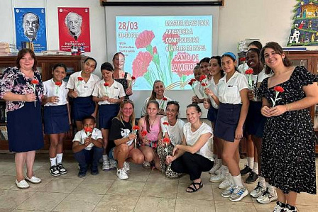 В мастер-классе приняли участие молодые российские соотечественники, а также кубинцы из местных школ. Ребятам рассказали, почему именно гвоздика является одним из символов Великой Победы.