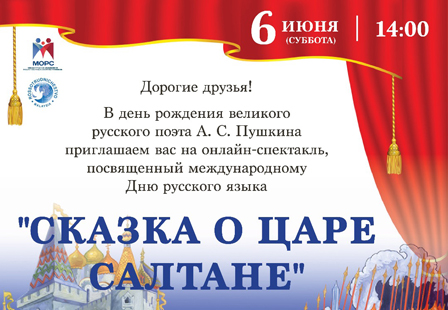 6 июня в Малайзии на платформе Зум прошел онлайн-спектакль «Сказка о Царе Салтане, о сыне его славном и могучем богатыре князе Гвидоне Салтановиче и о прекрасной царевне лебеди». Спектаклть посвящен Дню русского языка и 221-летию со дня рождения великого русского поэта А.С. Пушкина. Мероприятие организовано Международным объединением русскоговорящих соотечественников в Малайзии (МОРС) совместно с Российским центром науки и культуры в Куала-Лумпуре и школой при Посольстве России.