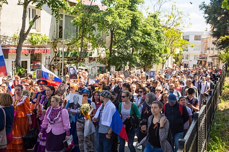 Акция «Бессмертный полк» проводится в Стамбуле уже десять лет подряд. За эти годы она превратилась в самое массовое мероприятие. К нему присоединяются члены всех национальных диаспор стран, принимавших участие в войне с фашизмом.