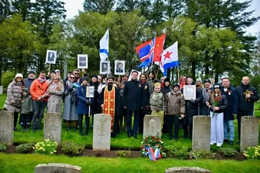 23 февраля 2025 г. по случаю Дня защитника Отечества сотрудники Посольства России в Исландии и проживающие в стране соотечественники приняли участие в торжественной церемонии на военно-мемориальной части городского кладбища «Фоссвогур» в Рейкьявике
