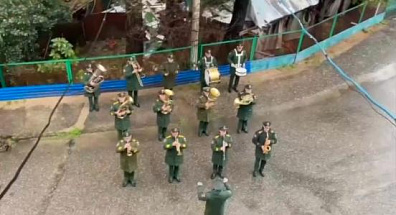 Особую атмосферу празднику добавил оркестр российской 7-й военной базы, порадовав ветерана исполнением патриотических композиций.