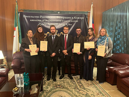 25 ноября в Посольстве состоялась церемония вручения представителям российского землячества в Алжире наград, присвоенных Правительственной комиссией по делам соотечественников за рубежом (ПКДСР).