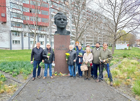 К памятнику, расположенному на самой большой улице Эрфурта - Юрий Гагарин ринг, пришли члены местного Общества "Гагарин", жители города, представители общественности, наши соотечественники и возложили цветы.