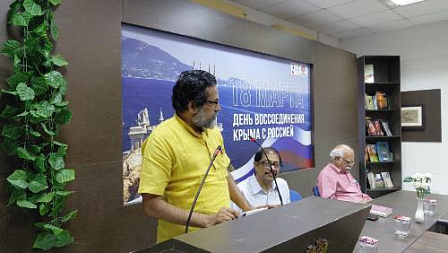 Гость встречи, известный историк, профессор Нараянан Наир Гопакумар, в своём выступлении подчеркнул: «Те, кто утверждает, что Крым был аннексирован Россией, должны знать, что это было добровольное, законное возвращение исторически российских земель, легитимизация которого осуществлялась посредством референдума, а не акта насильственного завоевания».