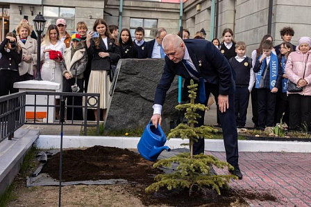 Герои Российской Федерации, этнические белорусы, летчики-космонавты Антон Шкаплеров и Олег Новицкий в Минске заложили Аллею Героев России.