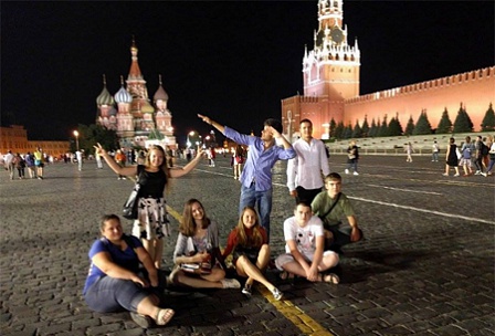 Ребята совершили обзорную экскурсию по Москве с остановками на Площади Европы, смотровой площадке на Воробьевых горах, Поклонной горе и Красной площади.