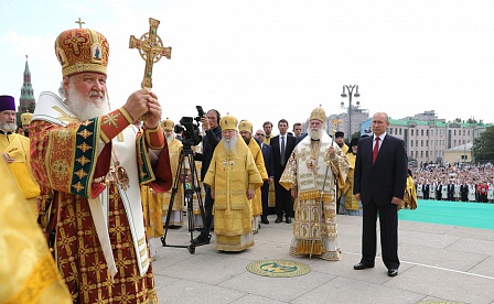 В праздничных мероприятиях принял участие Президент РФ Владимир Путин. По окончании службы глава государства присоединился к крестному ходу и вместе с верующими прошёл до Боровицкой площади к памятнику равноапостольному князю Владимиру.