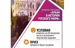 Соотечественники зарубежья могут принять участие в  международной интернет-викторине «Крым в истории Русского мира» и выиграть путёвку в Крым на семь дней. Зарегистрироваться и ответить на вопросы онлайн можно до 23 ноября 2020 года.