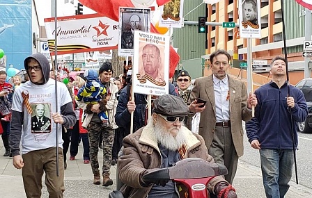 «Однополчане» прошли от центральной площади Анкориджа к военному мемориалу, почтили павших минутой молчания. «Полк» оказался очень дружным, сплоченным - все пели песни, у многих на глазах были слезы.