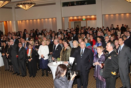 Посол Григорий Логвинов с супругой Ириной, работники посольства встречали гостей, которых собралось в этот зимний вечер более трехсот человек, сообщает русская газета в Австралии «Единение».