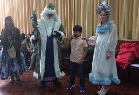 Танцы, новогодние загадки и конкурсы от Деда Мороза, стихи и песенки, старательно подготовленные детками, артистические номера от школы при Посольстве РФ в Перу - праздник удался.
