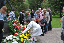 В день 70-летия освобождения Европы от фашизма на мемориальное кладбище, где захоронены жертвы национал-социализма, пришли жители Шверина, как немцы, так и русские.