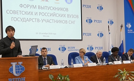 Как сообщал портал ВКС, Форум выпускников советских и российских вузов государств-участников СНГ проходит в Москве 18-19 октября 2018 года. В нем принимают участие представители ассоциаций выпускников советских и российских вузов, ведущие эксперты, журналисты, политологи, деятели науки и культуры, председатели обществ дружбы и других неправительственных организаций стран СНГ. К участию в мероприятии приглашены крупнейшие российские вузы, обучение в которых традиционно проходят студенты из разных стран мира.