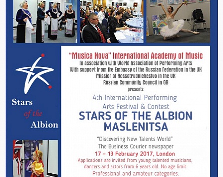 VI Фестиваль-конкурс исполнительского искусства «Звезды Альбиона. Масленица» пройдет 17-19 февраля 2017 года на престижных площадках центрального Лондона.