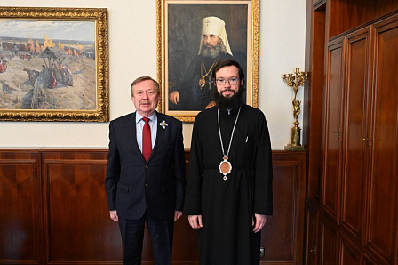 состоялась встреча председателя ОВЦС митрополита Волоколамского Антония с исполнительным директором фонда «Русский мир» Владимиром Кочиным.