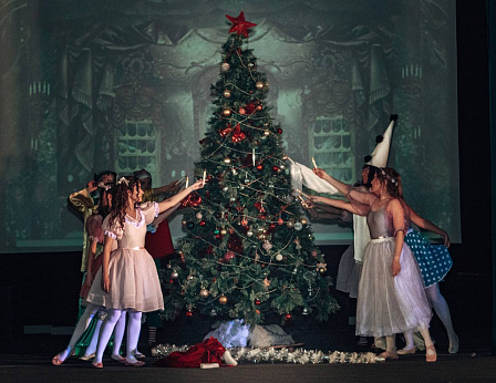 На спектакле театральные сцены переплетались с играми и танцами, создавая незабываемую атмосферу для детей. Ребята делились на команды, проходили увлекательные квесты и, конечно, зажигали огоньки на ёлке вместе с Дедом Морозом и Снегурочкой.