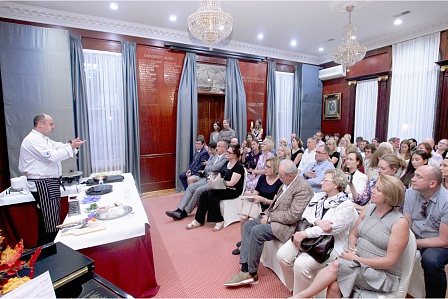 Кулинарное шоу прошло в формате популярной лекции и мастер-класса, в ходе которых Илья Лазерсон рассказал о гастрономических тонкостях традиционных русских блюд, богатстве и разнообразии русской кухни, кулинарных приемах, которые делают вкус русских блюд неповторимым.
