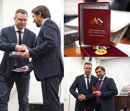 Медаль за многолетний труд, направленный на укрепление единства Союзного государства Белоруссии и России вручена директору Института русского зарубежья, главному редактору портала "Россия и соотечественники" Сергею Юрьевичу Пантелееву.