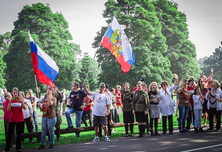В заключение патриотического торжества участники сфотографировались на память под знаменем Победы. Скандировали: «Россия! Россия! Россия!»