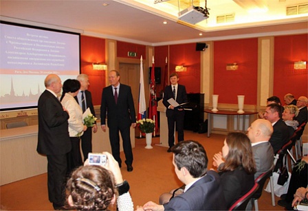 Встреча началась с показа фильма, посвященного латвийско-российским отношениям и деятельности посла России в Латвии А.А.Вешнякова.