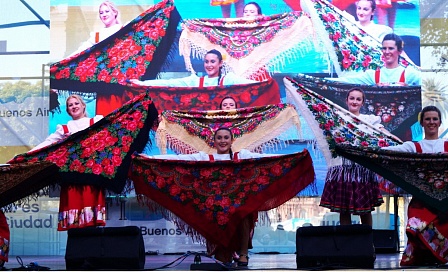 Со сцены, установленной в нескольких метрах от президентской резиденции «Каса Росада», перед публикой выступили творческие коллективы российской и белорусской диаспор, которые съехались в Буэнос-Айрес из разных провинций страны.