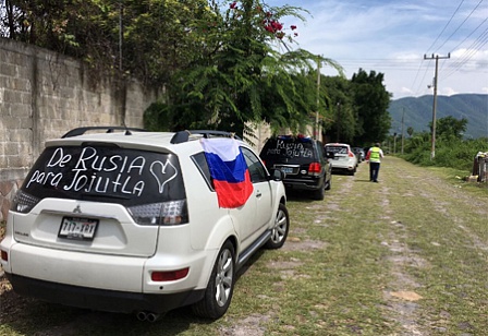 На пожертвования российских соотечественников и специально выделенные средства от Ассоциации СОРУМЕКС был организован и направлен автомобильный караван гуманитарной помощи для наиболее пострадавших мексиканских семей в районном центре Хохутла (штат Морелос), который находится в нескольких километрах от эпицентра разрушительного землетрясения.