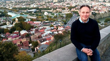 Побывав в Тбилиси, Серж Гревениц не упустил возможности прийти к памятнику Пушкину в центре столицы. Sputnik был единственным, кто узнал о его приезде.