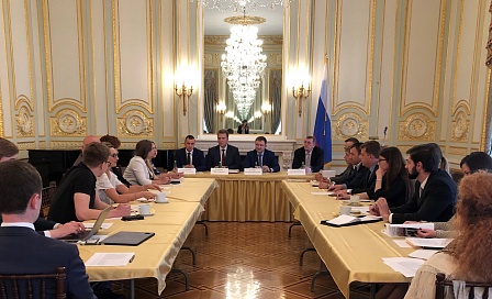 В Генеральном консульстве России в Нью-Йорке состоялась встреча представителей Росмолодежи и Россотрудничества с молодыми российскими соотечественниками Америки.