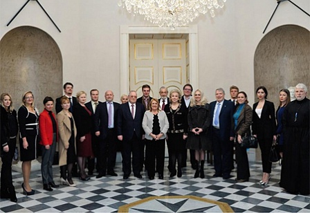 В одном из залов дворца собрались представители деловых кругов, руководители русских школ, культурных организаций и православного прихода, члены Координационного совета ассамблеи российских соотечественников (КСАРС), спортсмены, сотрудники российского посольства.