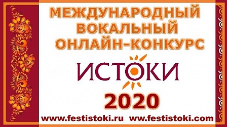 Международный Вокальный онлайн-конкурс «Истоки» в апреле-июне 2020 года собрал любителей русского языка и русской культуры со всего мира. Конкурс был направлен на поддержку творческой активности детей и педагогов в условиях карантина и самоизоляции в связи с распространением коронавирусной инфекции и проводился в целях популяризации и сохранения русской культуры и русского языка среди соотечественников, проживающих за рубежом, воспитания патриотических чувств и любви к России, выявления и поддержки талантливых детей, укрепления дружественных связей и положительного имиджа России.