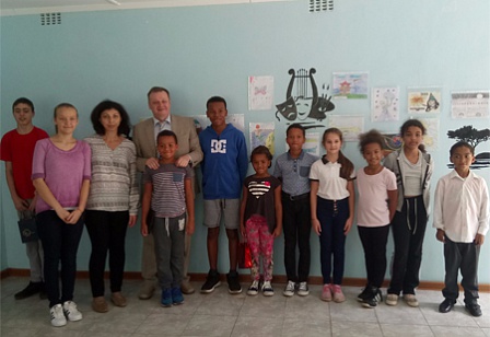 Рисунки победителей представили директор школы А.В.Багдасарян и учитель председателем правления ассоциации соотечественников Виктория Котяй. Призы, подготовленные РЦНК, вручил руководитель представительства Россотрудничества в Замбии Николай Чупашкин.