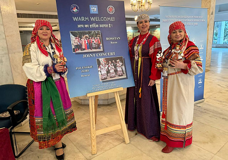 В Русском доме в Нью-Дели состоялся концерт фольклорного коллектива из Тюмени «Росстань» и народного ансамбля песни и танца «Полесские зори» из Пинска Брестской области.