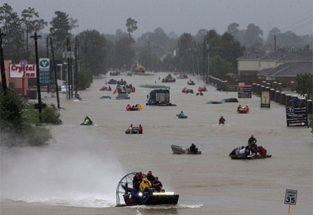 Лодки в дефиците в Хьюстоне, и всех владельцев частных лодок просят помочь властям. На машине в большинство районов не проедешь.