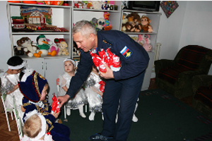 Воспитанники центра подготовили новогодние стихотворения и с радостью их рассказали своим гостям. Военнослужащие вручили детям сладкие подарки, передали воспитателям продукты питания для приготовления праздничного обеда.