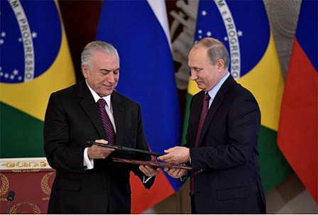 Президент Российской Федерации Владимир Путин назвал переговоры с Президентом Федеративной Республики Бразилия Мишелом Темером весьма результативными. С обеих сторон подтверждена приверженность развитию обоюдовыгодного российско-бразильского сотрудничества. Бразилия является одним из ключевых партнёров России. Сотрудничество между двумя странами основывается на многолетних традициях дружбы и взаимного уважения.