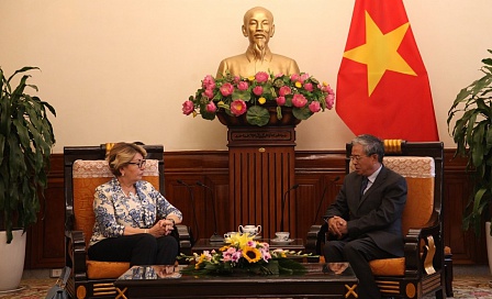 Элеонора Митрофанова посетила Министерство образования и подготовки кадров Вьетнама, где обсудила с министром Фунг Суан Ня ежегодную реализацию приемной кампании вьетнамских кандидатов на обучение в образовательных учреждениях Российской Федерации.