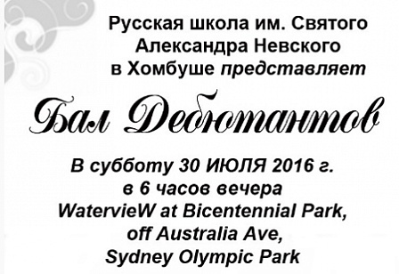 Русская Школа им. Святого Александра Невского в Хомбуше проведет 30 июля 2016 года Бал дебютантов. На бал приглашаются российские соотечественники – молодые люди и их родители.