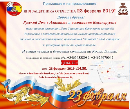 Русский дом в Аликанте и ассоциация «Беникарусель» приглашают соотечественников отметить День защитника Отечества.