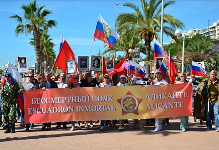 7 мая соотечественники прошли в колонне знаменитой акции «Бессмертный полк». Шествие объединило всех граждан бывшего Советского Союза и многочисленных представителей Испании со всей провинции Аликанте. Каждый участник нёс портрет своего родственника-героя, продолжая память о великом подвиге народа. Звучали песни военных лет, а память погибших почтили минутой молчания и, в качестве символа мира, были запущены в голубое испанское небо белые голуби и воздушные шары.