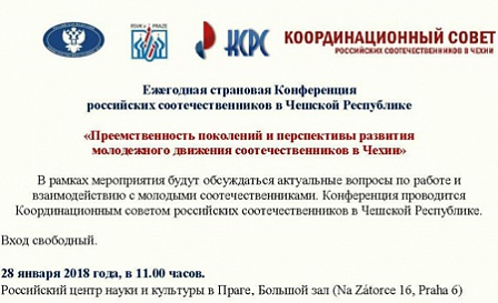 Конференция соотечественников, проживающих в Чехии, пройдет в Российском центре науки и культы в Праге 28 января 2018 года. Форум проводится Координационным советом российских соотечественников в Чешской Республике.