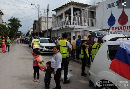 Также соотечественники при помощи их друзей-мексиканцев привезли в город строительные инструменты и защитное оборудование, которые сейчас при разборе завалов. Привезенная помощь моментально разошлась по рукам местных жителей, которые выстраивались в длинные очереди для получения пакетов. В знак благодарности мексиканцы хлопали в ладоши и кричали «Россия, Россия».