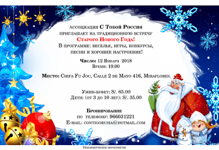 Ассоциация «С тобой, Россия!» - Координационный совет российских соотечественников в Перу приглашает на традиционную встречу Старого Нового года.
