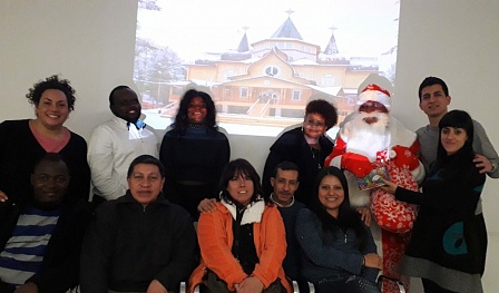 Карпицкая Наталья, руководитель Центра, рассказала о правлении Петра I и показала изображение картин русских художников. Были представлены современные новогодние песни, обзор советских фильмов и виртуальная экскурсия по зимней России.