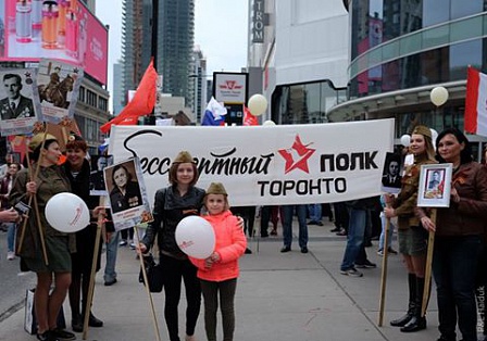 В этом году в центре Торонто прошел Парад Бессмертного полка. На протяжении последних четырех лет в городе проходят многотысячные шествия, в которых принимают участие ветераны Второй мировой и Великой Отечественной войны, бывшие узники гетто и концлагерей, блокадники, дети войны, и тысячи граждан, родившихся в послевоенные годы. Многие из участников несли портреты родных и близких, воевавших в составе Красной армии, на флоте и на суше, служивших в тылу и в обороне городов. В разные годы Бессмертный полк проводили Русский конгресс Канады, «Русская Канада», «Русский мир Канады».