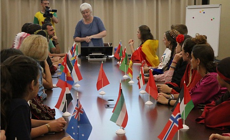 На встрече были представители Ирландии, Швейцарии, Хорватии, Литвы, Туркмении, Ливана, Марокко, Ирана, Бельгии, Палестины, Испании, Катар, Иордании, Сирии, Кувейта, Конго, США, Кореи, Чили, Люксембурга, Турции, Албании, Великобритании, Монголии и Норвегии. Все - в национальных костюмах. Эти ребята живут в далеких странах, но всей душой любят Россию и «Артек».