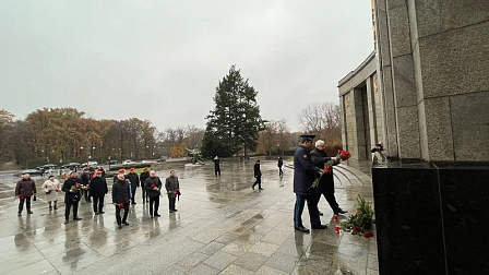 Память павших героев почтили Чрезвычайный и Полномочный Посол России в Германии С.Ю.Нечаев, атташе по вопросам обороны С.В.Чухров, сотрудники посольства, а также представители германской общественности.
