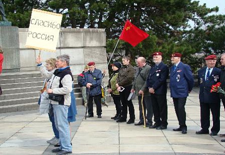 Сотни людей пришли к памятнику советскому солдату, чтобы воздать дань памяти тем, кто освободил словацкую землю от нацизма.